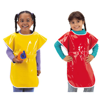 Red: Protect kids’ clothes during their messiest activities! Our wipe-clean, waterproof red apron is made of extra-rugged vinyl to stand up to years of use…and includes a handy belt that adjusts for artists of all sizes!