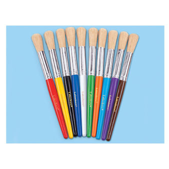 These big brushes are easy for beginners to grip…and feature wooden handles and all-natural bristles. They’re even color-coordinated to our No-Spill Paint Cups (sold separately). Set of 10 brushes; each is 7 1/2" long.